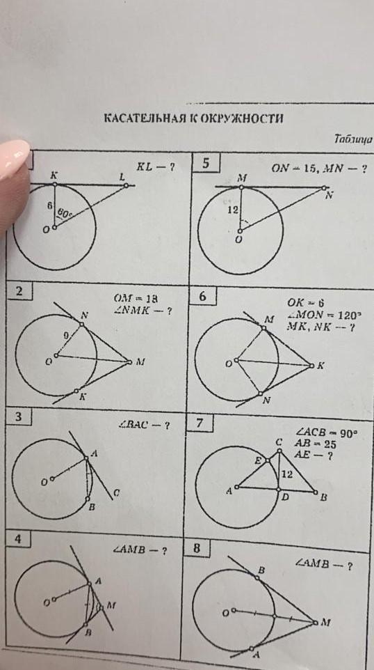 Это пятый рисунок Касательная MN перпендикулярна радиусу OM. OMN - египетский треугольник (3:4:5) cо множителем 3 (OM=4*3; ON=5*3). MN=3*3=9