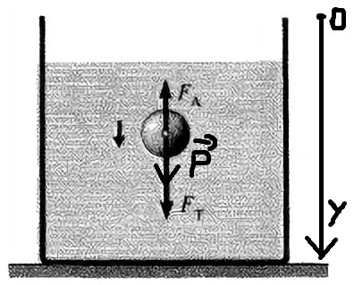 ![vec R = 0 ; vec F_A + vec F_T + vec P = 0 \ \ OY: F_T - P - F_A = 0 \ \ F_A = F_T - P = 3.6 H - 2.8 H = 0.8 [H] \ \ F_A = rho g V_T ; V_T = dfrac{F_A}{rho g} ; m = rho V ; F_T = mg \ \ 1) V_T = dfrac{0.8}{1000*10} = 8 * 10^{-5} [M^{3}] \ \ 2) F_T = rho_{1}Vg ; V = dfrac{F_T}{rho_{1}g} = dfrac{3.6}{7100*10} = 5.07 * 10^{-5} [M^{3}] \ \ V_Pi = V_T - V = 8 * 10^{-5} - 5.07 * 10^{-5} = 2.93 * 10^{-5} [M^{3}] \ \ vec R = 0 ; vec F_A + vec F_T + vec P = 0 \ \ OY: F_T - P - F_A = 0 \ \ F_A = F_T - P = 3.6 H - 2.8 H = 0.8 [H] \ \ F_A = rho g V_T ; V_T = dfrac{F_A}{rho g} ; m = rho V ; F_T = mg \ \ 1) V_T = dfrac{0.8}{1000*10} = 8 * 10^{-5} [M^{3}] \ \ 2) F_T = rho_{1}Vg ; V = dfrac{F_T}{rho_{1}g} = dfrac{3.6}{7100*10} = 5.07 * 10^{-5} [M^{3}] \ \ V_Pi = V_T - V = 8 * 10^{-5} - 5.07 * 10^{-5} = 2.93 * 10^{-5} [M^{3}] \ \](https://tex.z-dn.net/?f=vec+R+%3D+0++%3B++vec+F_A+%2B+vec+F_T+%2B+vec+P+%3D+0+%5C+%5C+OY%3A+F_T+-+P+-+F_A+%3D+0+%5C+%5C+F_A+%3D+F_T+-+P+%3D+3.6+H+-+2.8+H+%3D+0.8++%5BH%5D+%5C+%5C+F_A+%3D+rho+g+V_T++%3B++V_T+%3D++dfrac%7BF_A%7D%7Brho+g%7D++%3B++m+%3D+rho+V++%3B++F_T+%3D+mg+%5C+%5C+1%29+V_T+%3D++dfrac%7B0.8%7D%7B1000%2A10%7D+%3D+8+%2A+10%5E%7B-5%7D++%5BM%5E%7B3%7D%5D+%5C+%5C+2%29+F_T+%3D+rho_%7B1%7DVg++%3B++V+%3D++dfrac%7BF_T%7D%7Brho_%7B1%7Dg%7D+%3D++dfrac%7B3.6%7D%7B7100%2A10%7D+%3D+5.07+%2A+10%5E%7B-5%7D++%5BM%5E%7B3%7D%5D+%5C+%5C+V_Pi+%3D+V_T+-+V+%3D+8+%2A+10%5E%7B-5%7D+-+5.07+%2A+10%5E%7B-5%7D+%3D+2.93+%2A+10%5E%7B-5%7D++%5BM%5E%7B3%7D%5D+%5C+%5C+)