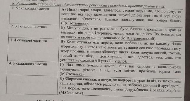 Установіть відповідність між складними реченнями та. кількістю простих речень в них