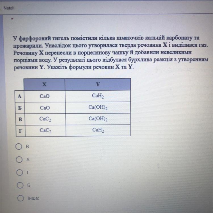 У фарфоровий тигель помістили кілька шматочків кальцій карбонату та