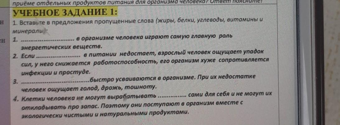 3. Жири, 4. Витамины, 1. Углеводы, 2. Белки
