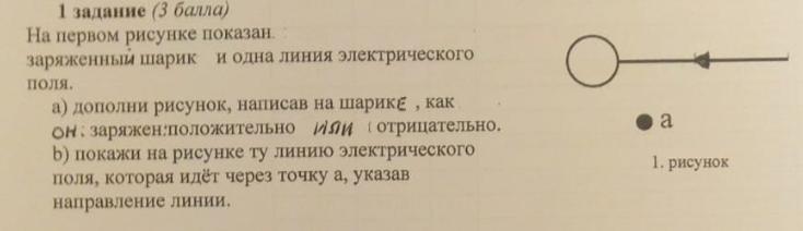Силовая линия действует по направлению к шарику, а значит его заряд негативный (заряжен отрицательно)