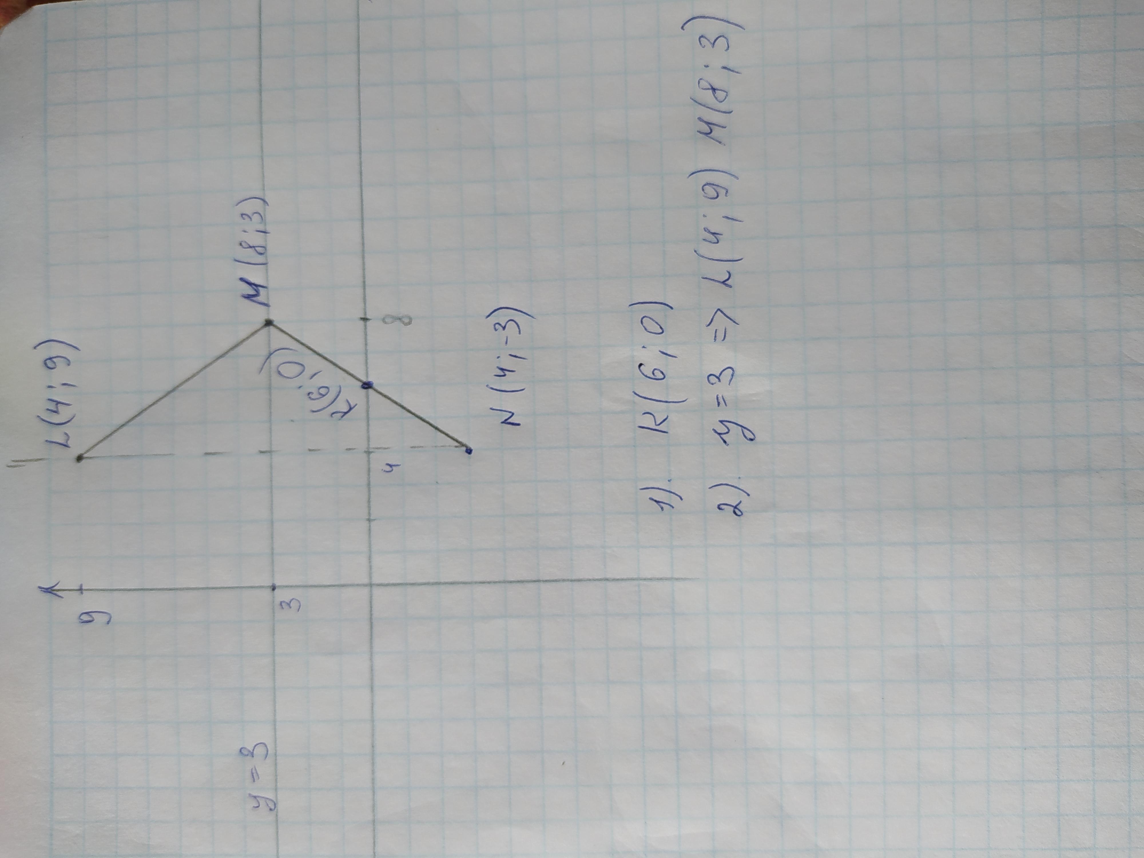 2) знайдіть координати кінців відрізка симетричного поданому відносно прямої y=3