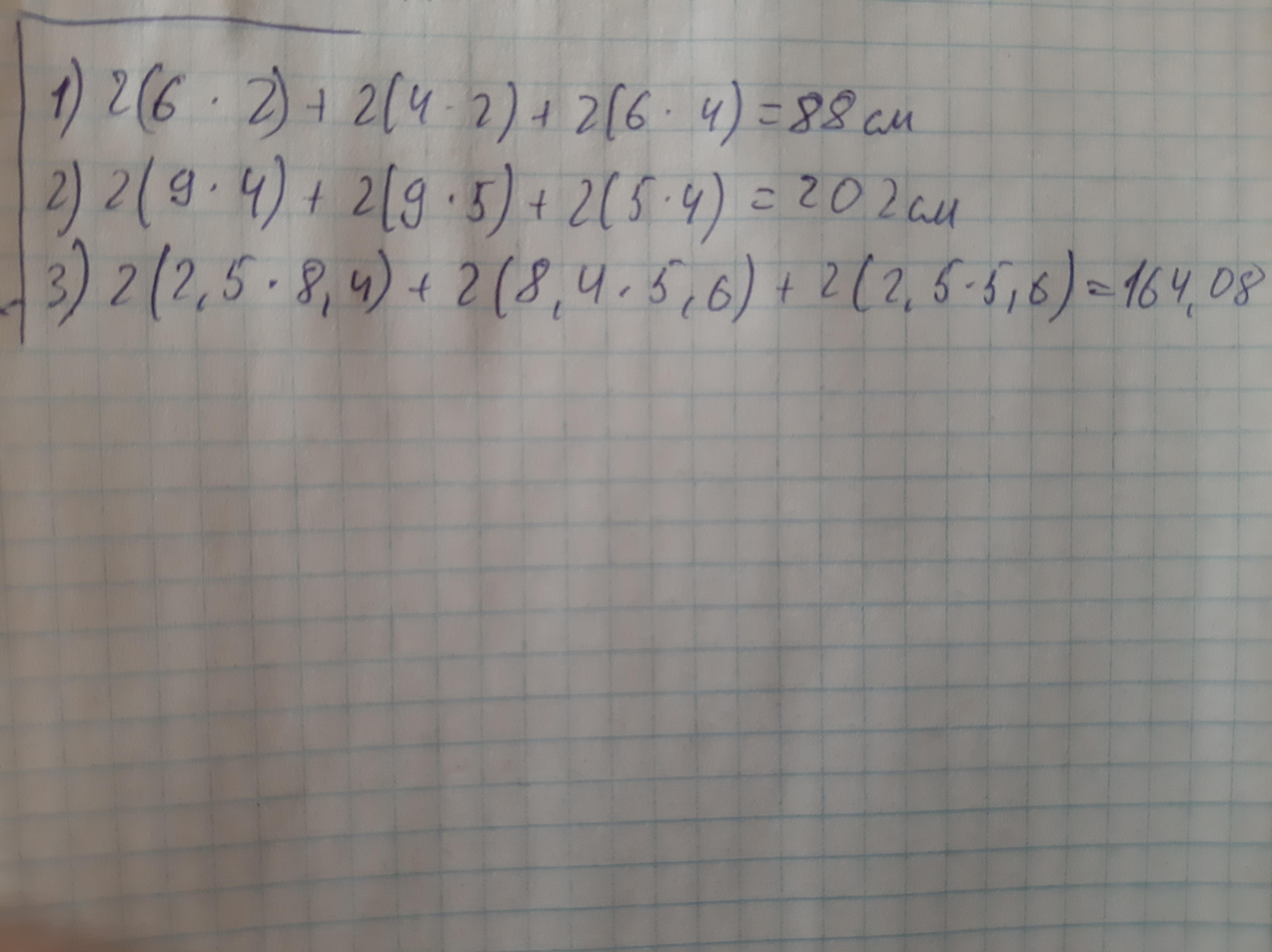 Например, в квадрате есть 2 стороны с размером 6×2, еще 2 стороны с 4×2, 2 стороны 6×4.