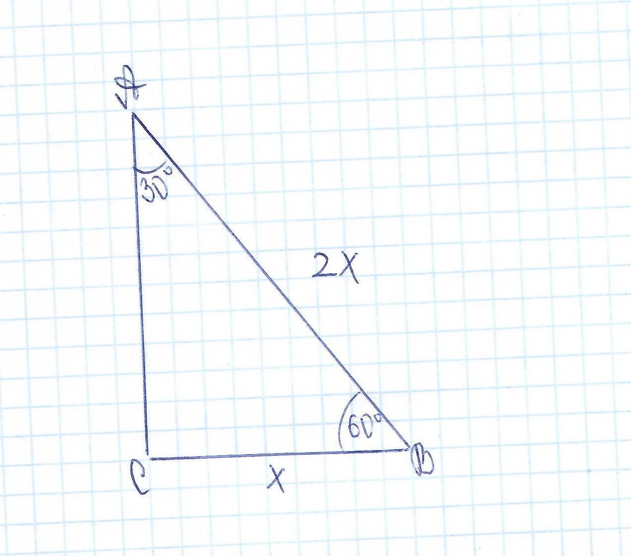 х = 12(см) - длина меньшего катета. ( катет меньший, т.к. против меньшего угла - меньший катет, угол 30° - меньший, поэтому и катет против него тоже меньший)