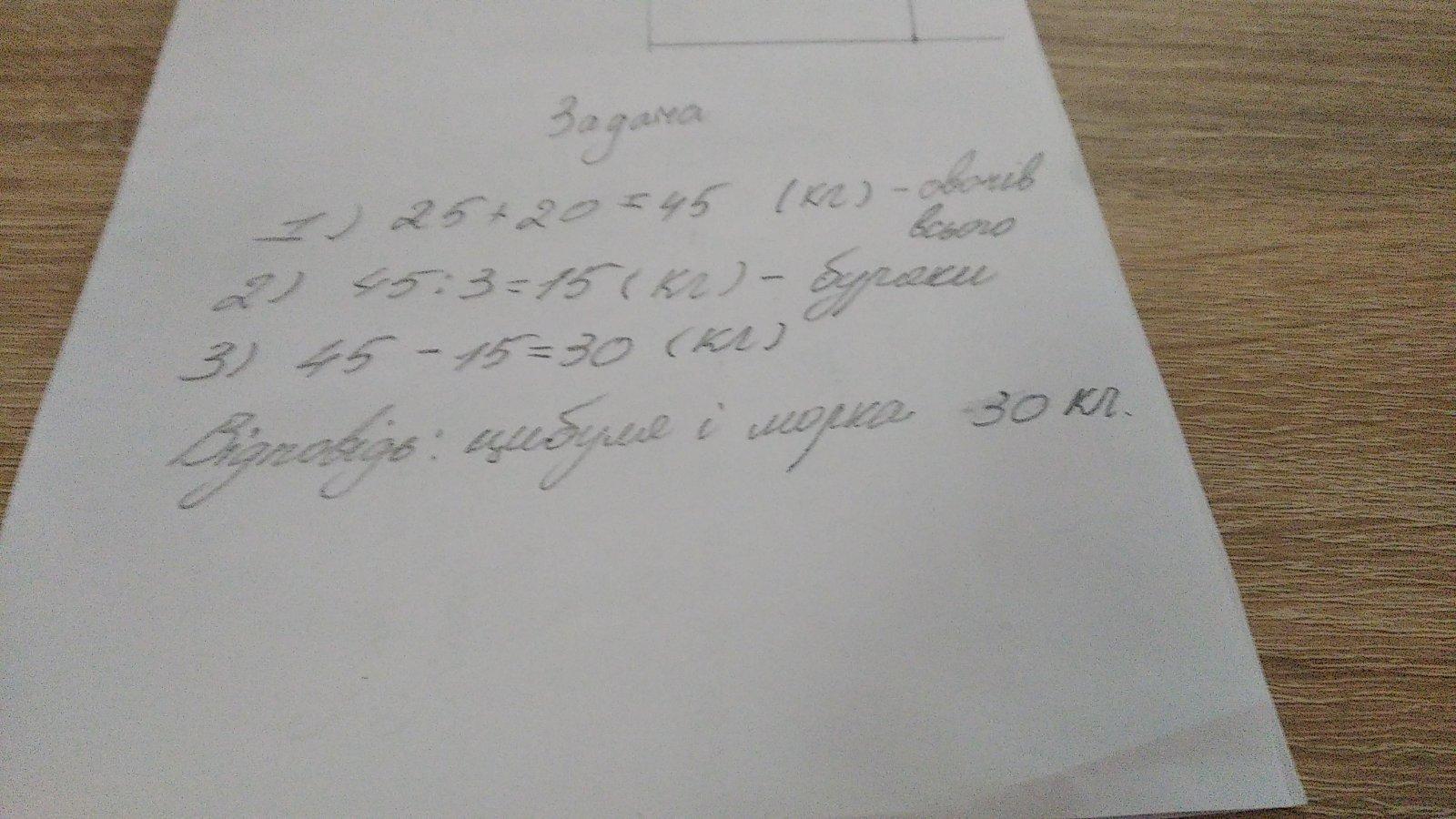у їдальню привезли два ящики з овочами в одному ящику було 25кг овочів,а в іншому -20,третину всіх овочів становили буряки а решту цибуля і морква, скільки кг цибулі і моркви привезли в їдальню