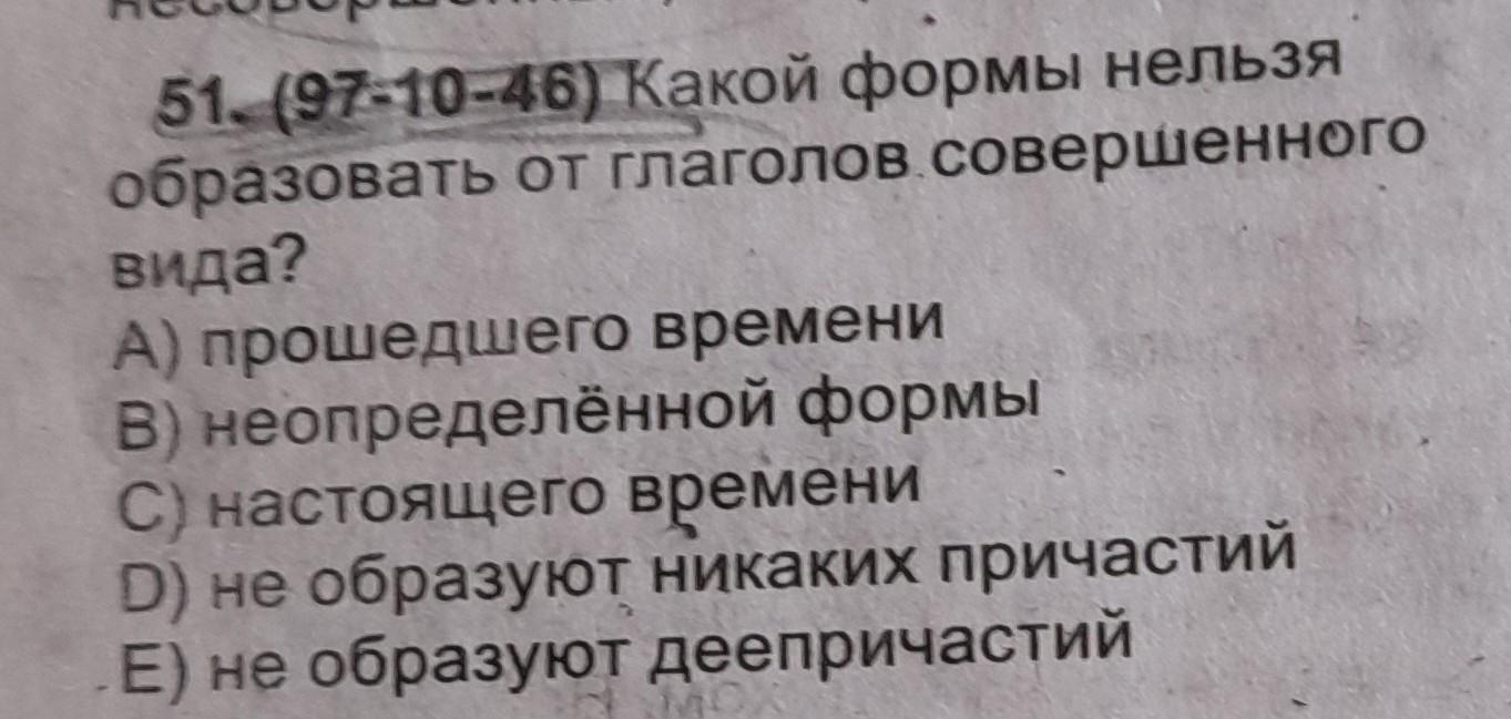 Ответ: С, от глаголов совершенного вида нельзя образовать форму настоящего времени потому, что они обозначают уже совершённое действие