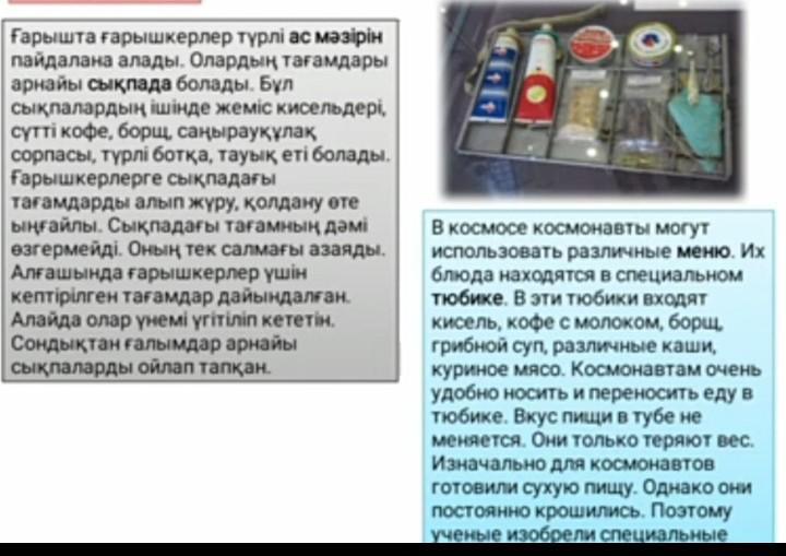 Алғашқы кезде ғарышкерлер ге қандай тамақ дайындалды?