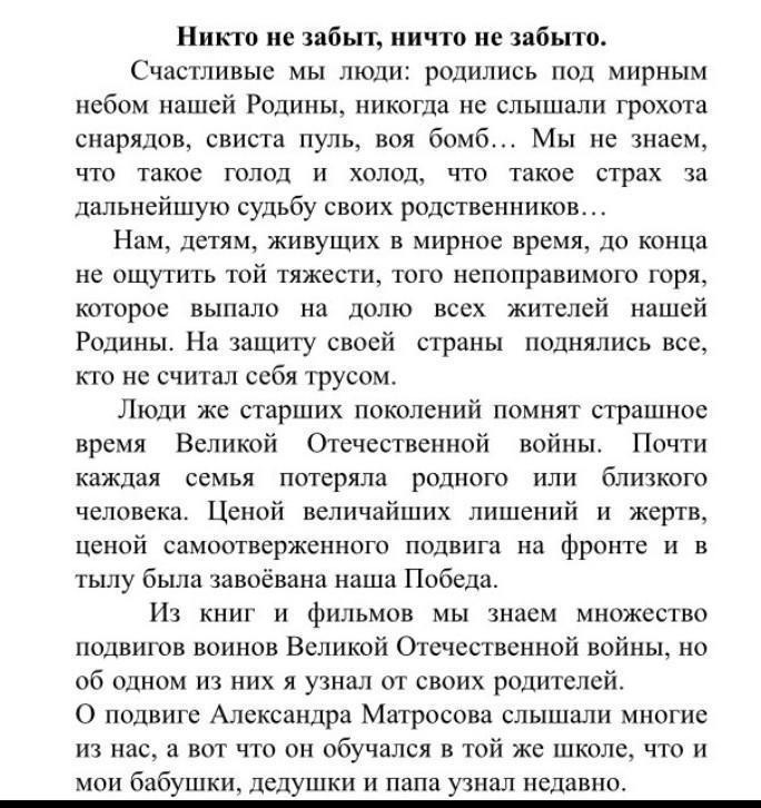 Я тож сделал Эссе никто не забыт ничто не забыто там можеш что угодно писать;)