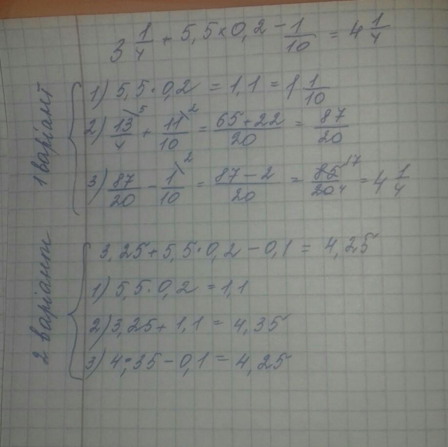 3 1/4+5,5x0,2- 1/10=3,25+0,55=3,8
