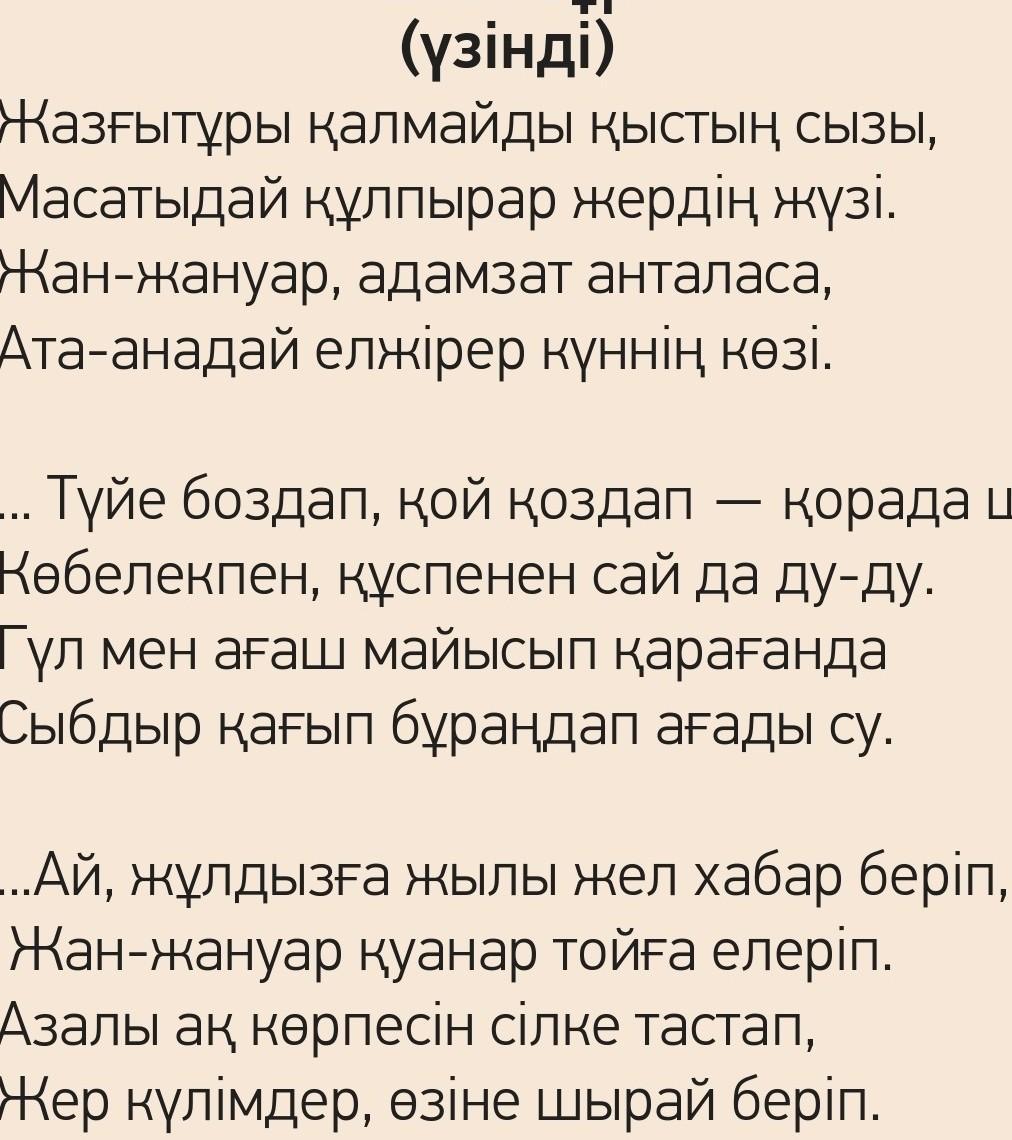 4.Автор бұл өленде не айтқысы келді?Автор бұл өленде жаздың әсем ауа-райын айтқысы келді