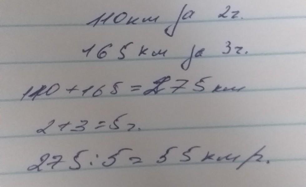 2)Если автобус проезжает 110 км за 2 часа и 165 км за 3 часа, найдите среднюю скорость автобуса.