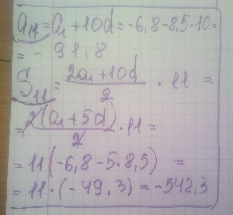 . Дана арифметическая прогрессия (an), разность которой равна −8,5; a1 = −6,8. Найдите a11 иS11.