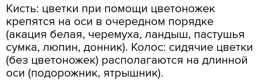 Кисть. Строение соцветия кисти. Кисть характерна удлиненной главной осью, вдоль которой равномерно вырастают цветки на цветоножках примерно одинаковой длины.