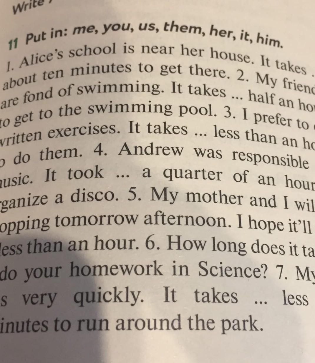4) It took him a quarte of an hour ...
