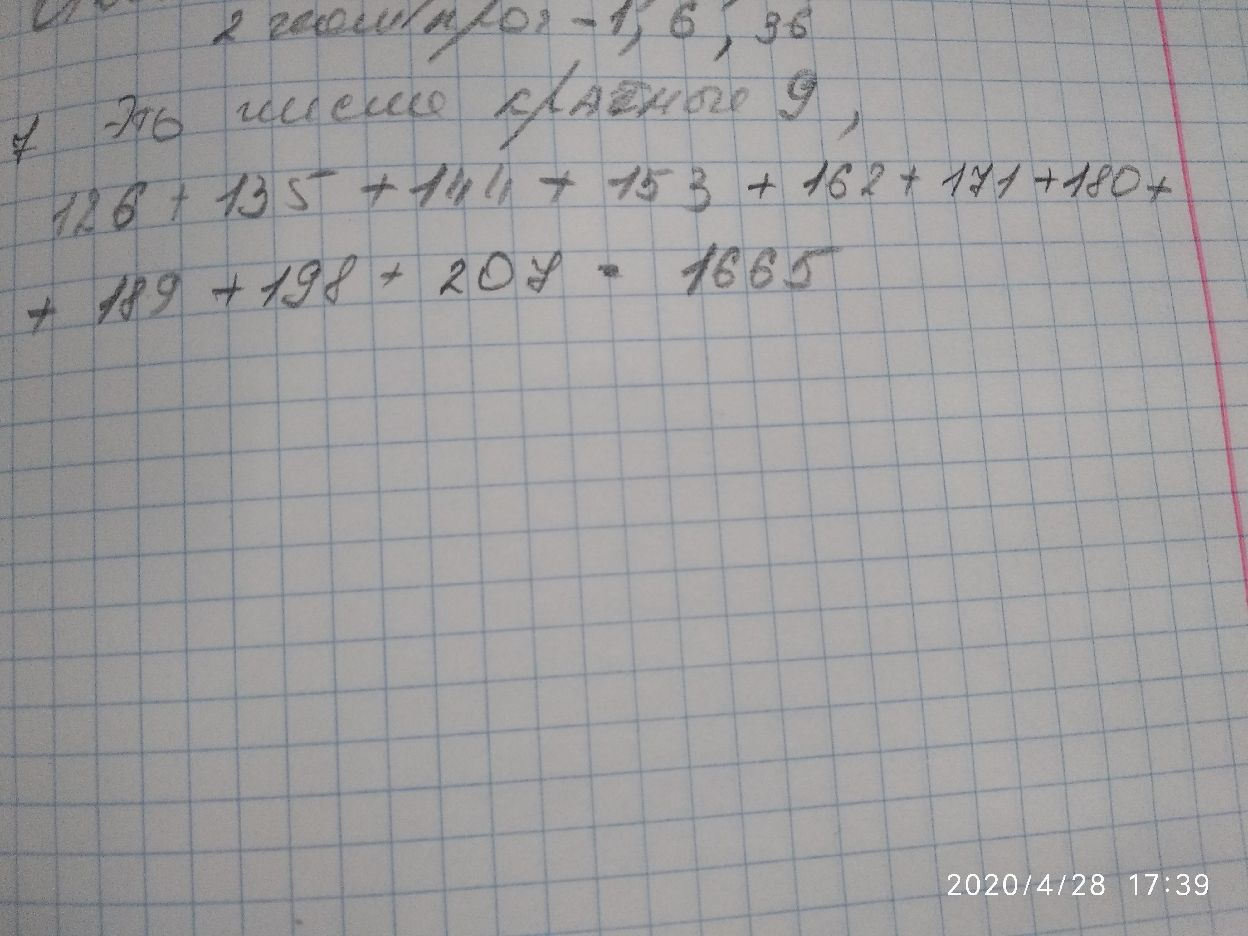 Найдите сумму всех натуральных чисел кратных 9, которые больше 120 и меньше 210