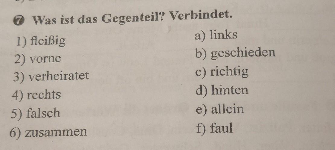 1) fleißig - f) faul