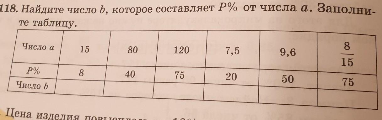 1118. Найдите число b, которое составляет P% от числа а. Заполни-