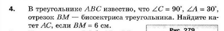 2) Биссектриса ВМ делит ∠В пополам, следовательно, в прямоугольном треугольнике МВС катет МС лежит против угла 30°, и поэтому равен половине гипотенузы ВМ: