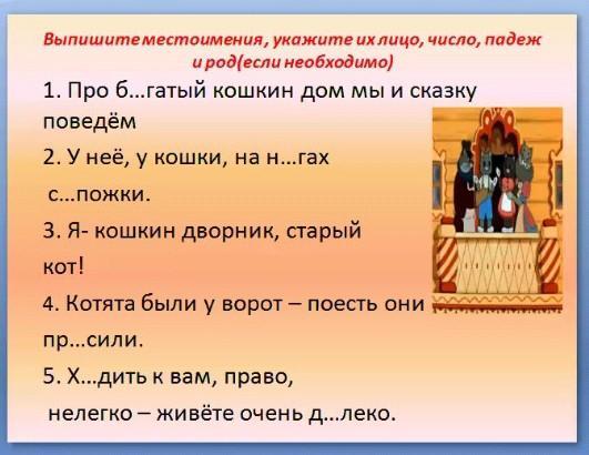1)про бОгатый кошкин дом мы и сказку поведём.