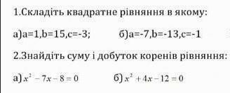 2. а) Сума за теоремою Вієта =7 Добуток=-8