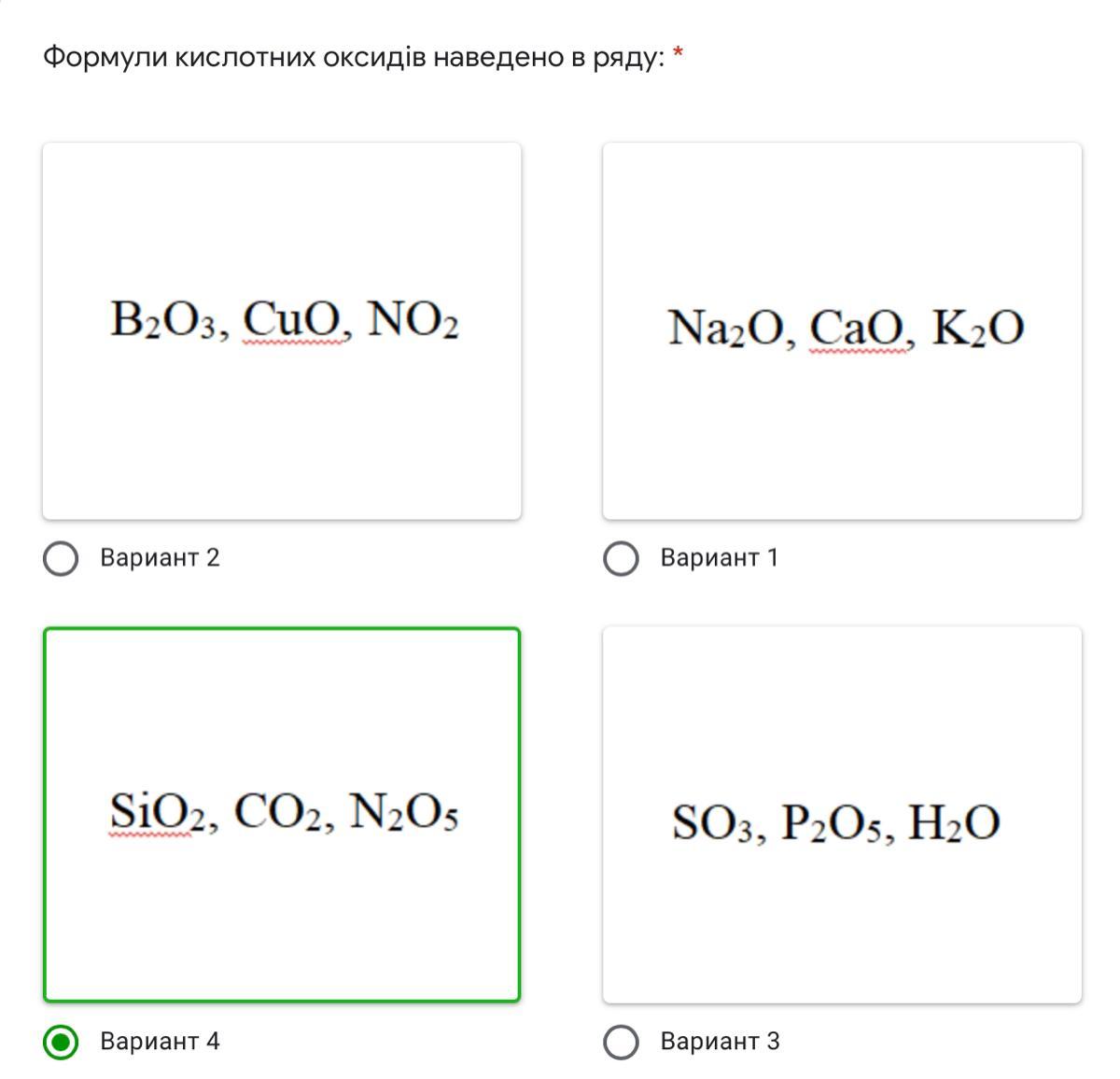 В первом варианте есть основный оксид меди, во втором только основные оксиды, в третьем вода не является кислотным оксидом
