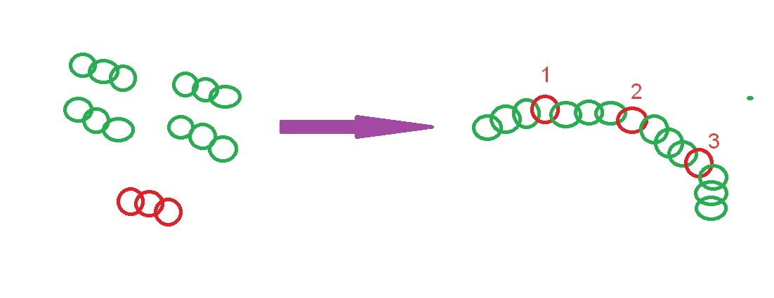 3. Все обрывки соединены в цепь, длиной 5*3=15 звеньев.