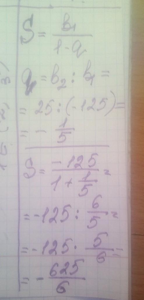 знайти суму нескінченої геометричної прогресії -125,25,-25...​