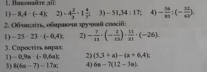 1) сразу ответ 2) -14/3×11/7=-22/3=-7 целых 1/3 3) сразу ответ 4) 56/81 × 63/32 = 23/9 ×7/16= 161/144=1 целая 17/144