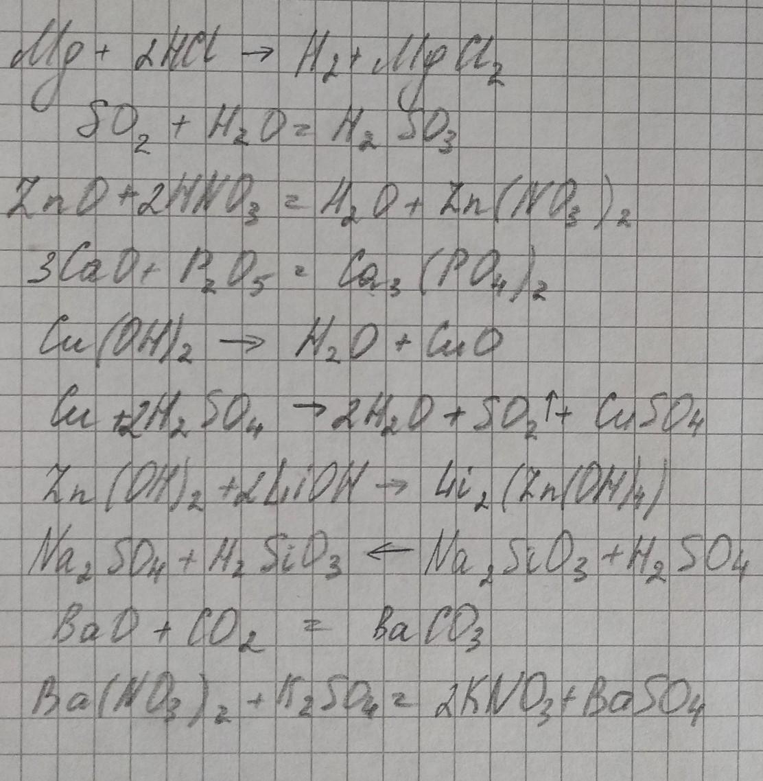 химические уравнения, ответ на фото