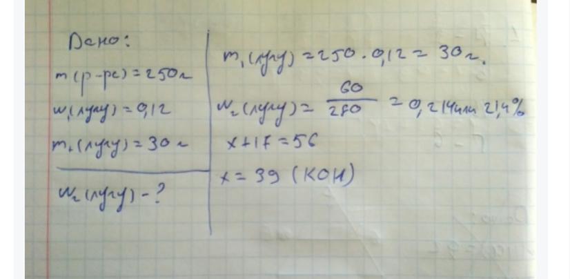 ДАЮ 40 БАЛЛОВ!! До 200г розчину з масовою часткою лугу 15% додали ще 30г лугу.