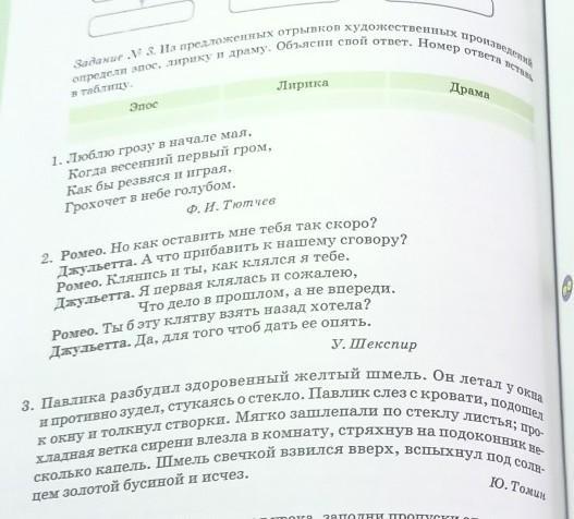 определи эпос, лирику и драму. Объясни свой ответ. Номер ответа вставь