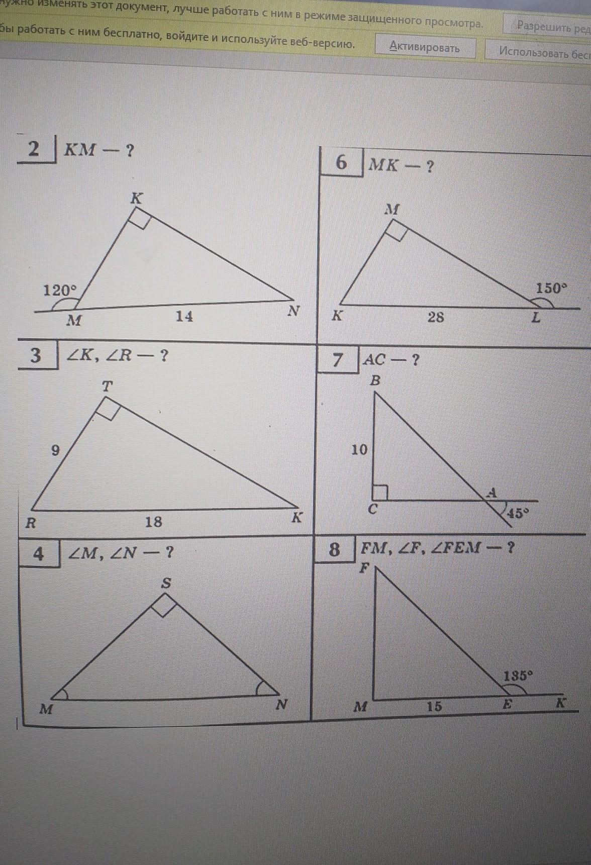 3)TR=1/2 RK, следовательно угол, лежащий напротив TR равен 30градусов,а другой 180-90-30=60