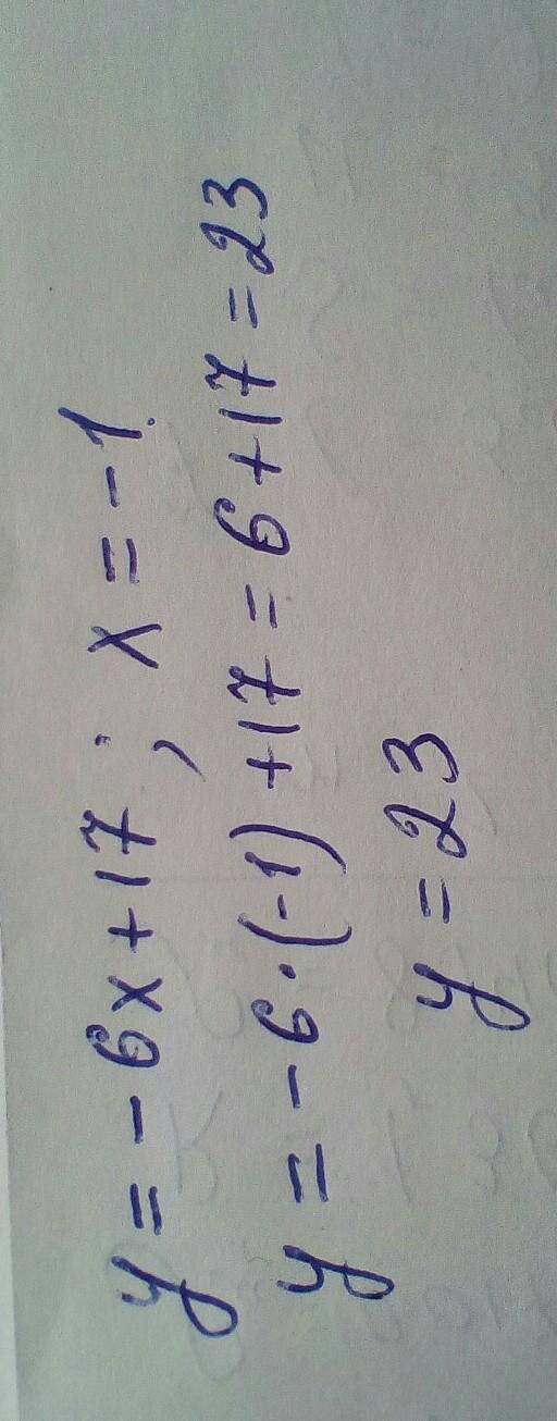 функцію задано формулою y= -6x+17. знайдіть значення функції якщо значення аргументу дорівнює -1