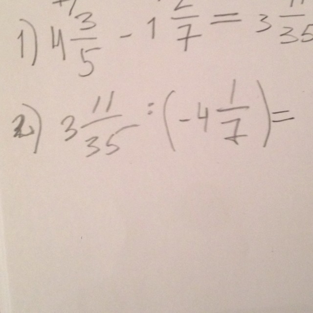 3 ц 11/35 : (- 4 ц 1 /7)= 116/35 :(-29/7)=-4/5=-0,8