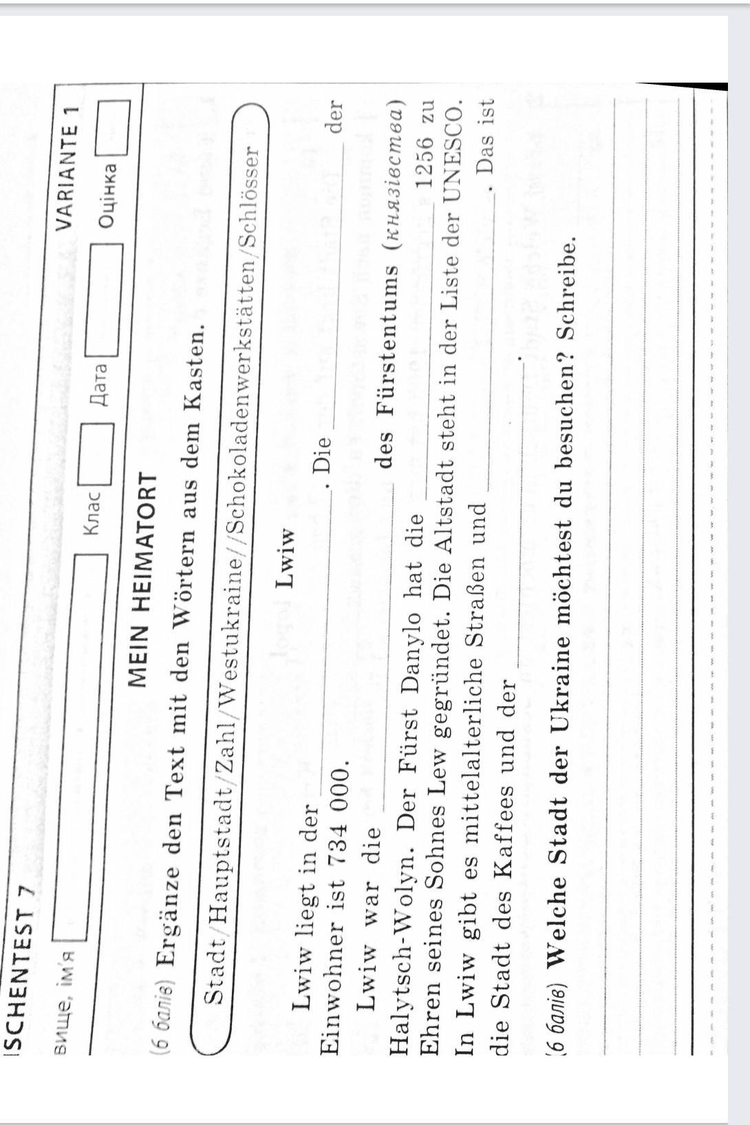 2. Ich möchte Kyjiw besuchen. Kyjiw ist die Haupstadt der Ukraine. Die Stadt ist sehr groß und schön. Dort wohnt meine Schwester. Auch möchte ich Zoo und Theater besuchen.