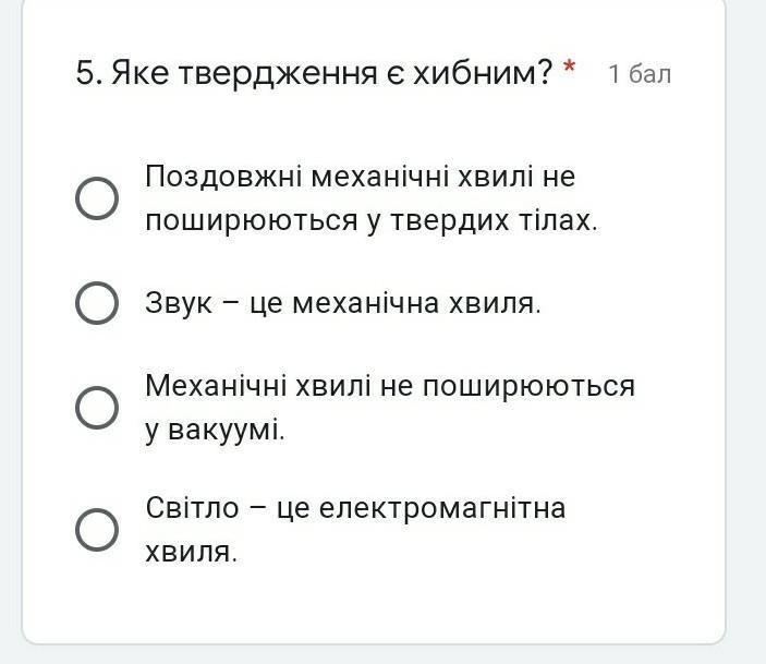 Твердження №1 хибне.Бо поздовжні механічні хвилі все-таки мають змогу поширюватись у твердих тілах