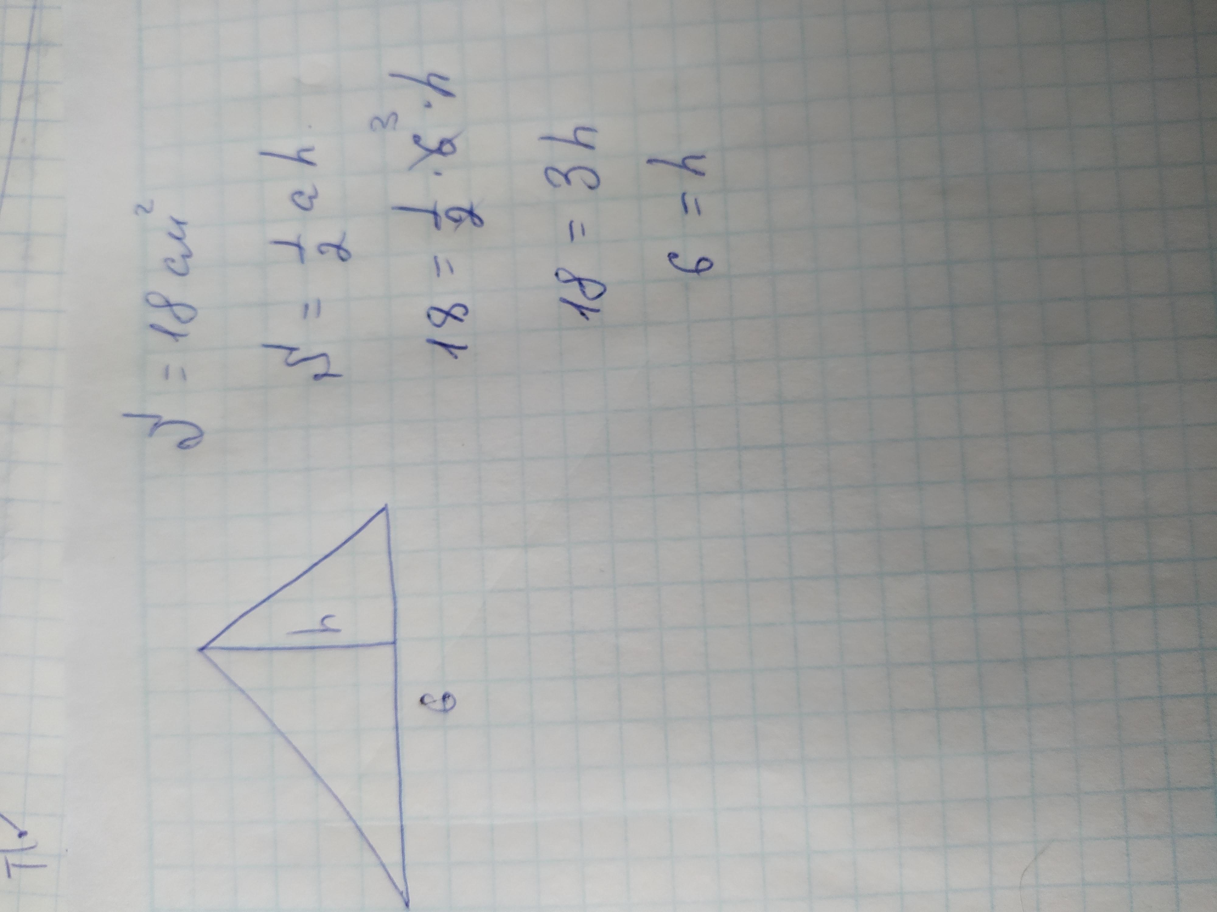 площа трикутника дорівнює 18(кв)см, а одна із його сторін 6см. Знайдіть висоту трикутника, що проведена до цієї сторони