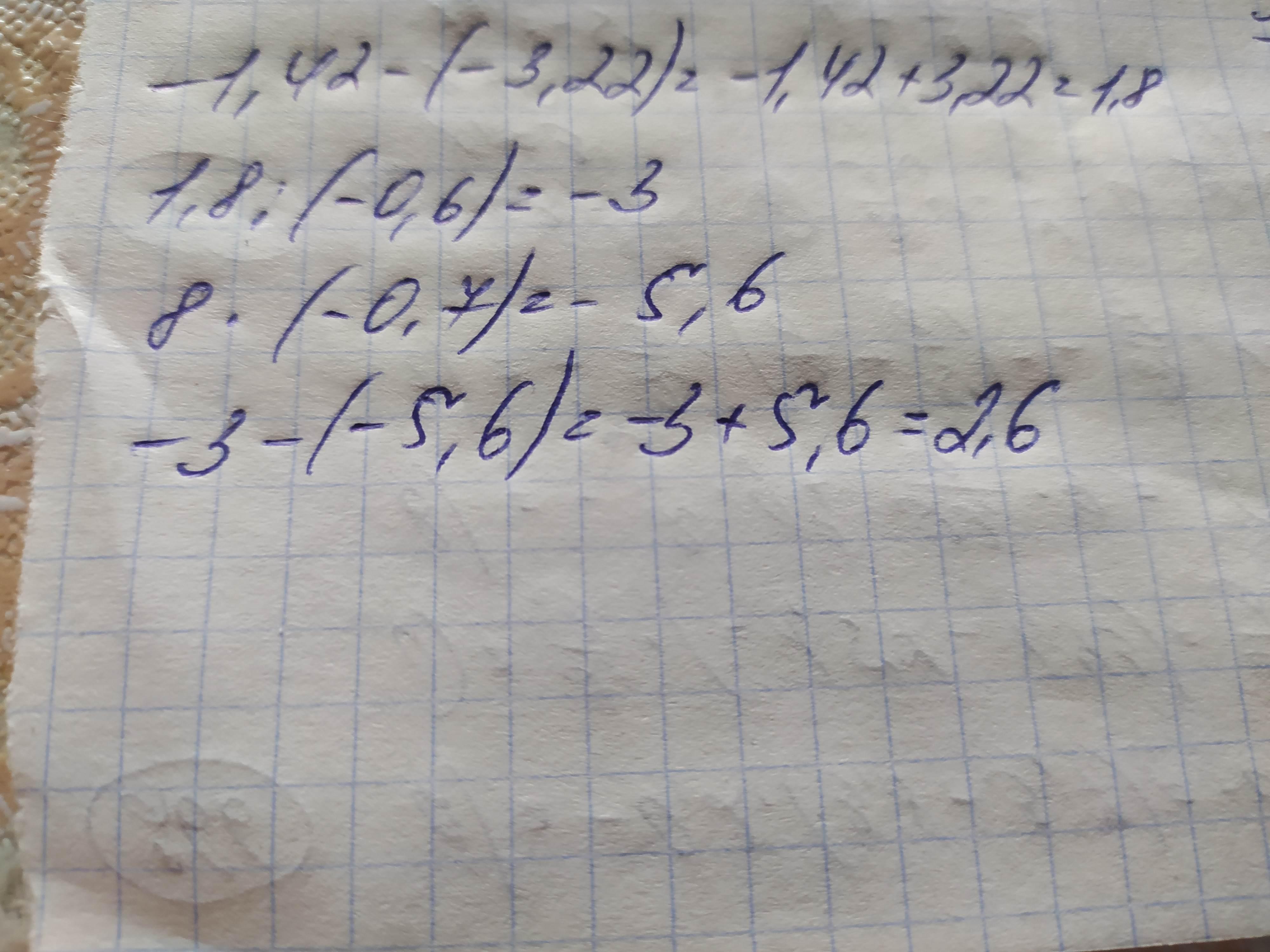 (—1,42+3,22):(—0,6)-8×(—0,7)