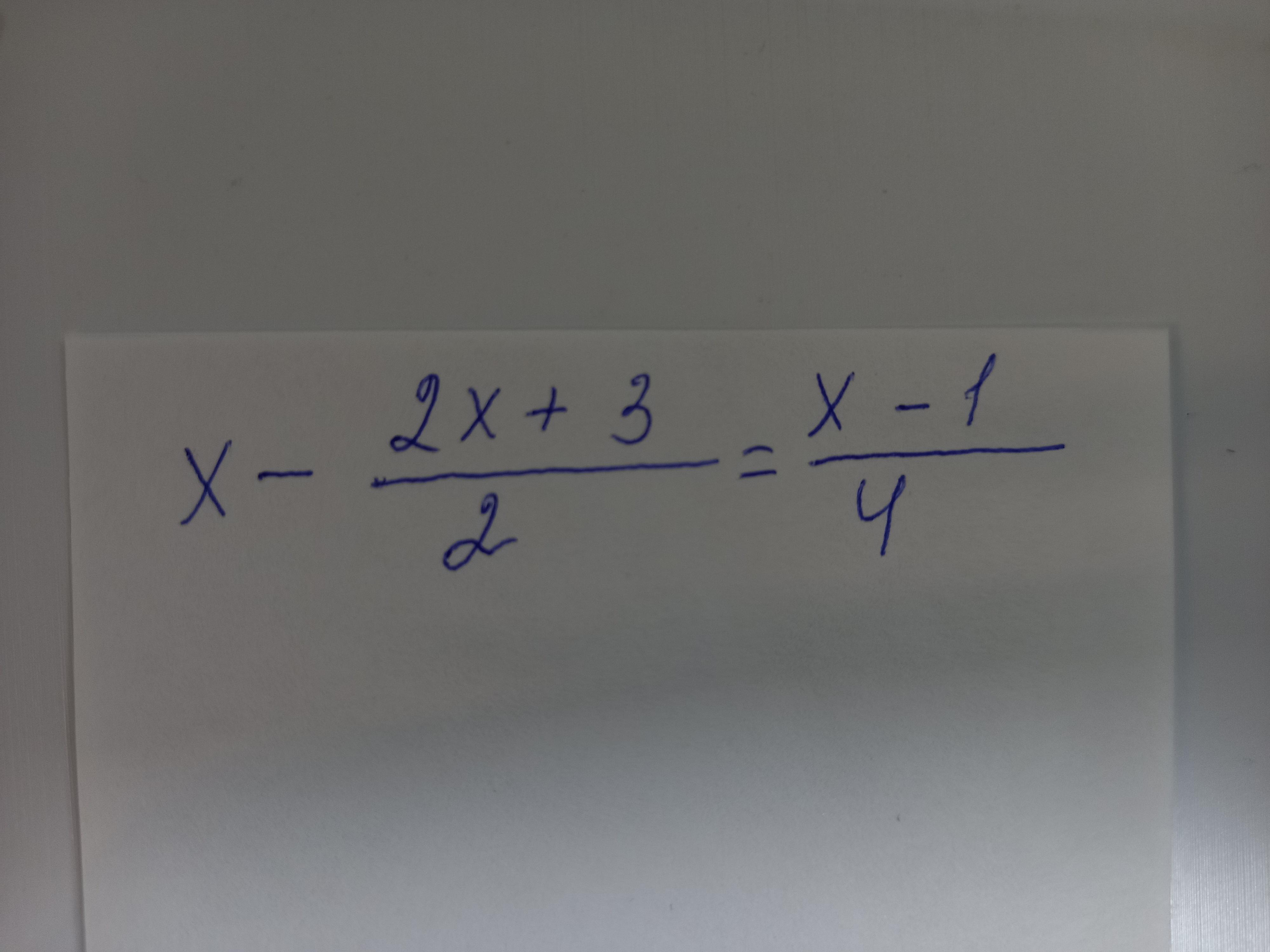 x -  \frac{2x + 3}{2}  =  \frac{x - 1}{4}  \\  \frac{2x - 2x - 3}{2}  =  \frac{x - 1}{4}  \\  \frac{ - 3}{2}  =  \frac{x - 1}{4}  \\ 2x - 2 =  - 12 \\ 2x =  - 10 \\ x =  - 5