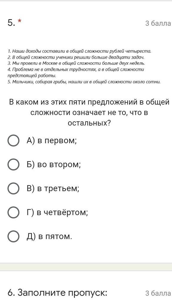 В каком из этих пяти предложений в общей сложности означает не то, что в