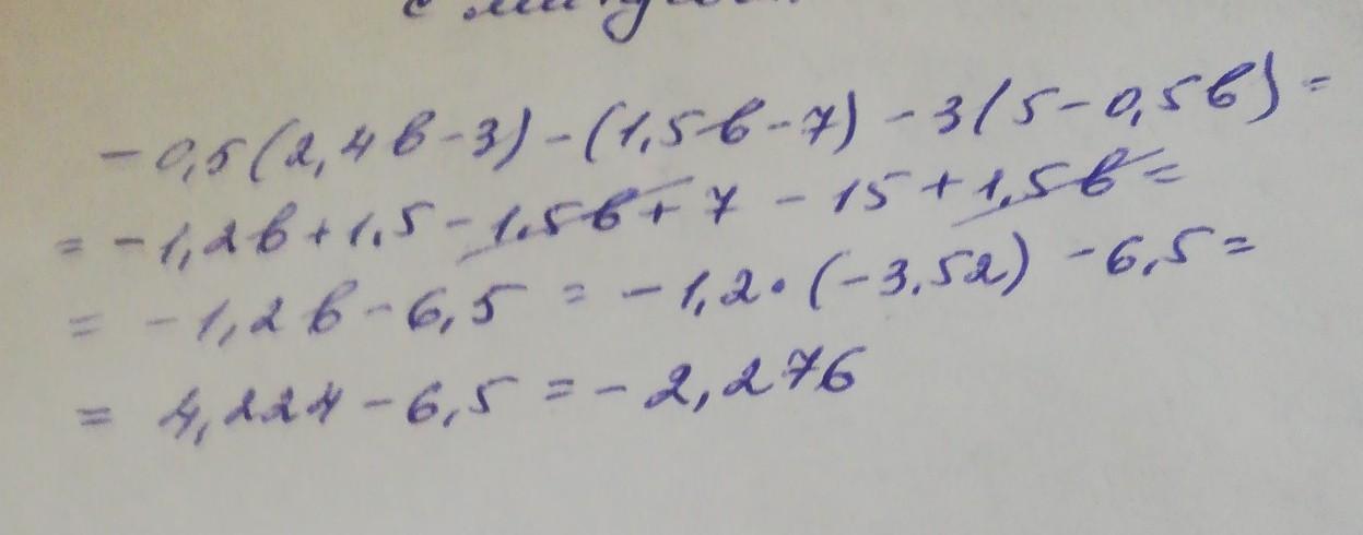 – 7) - 3(5 – 0,5b) и вычислите его значение