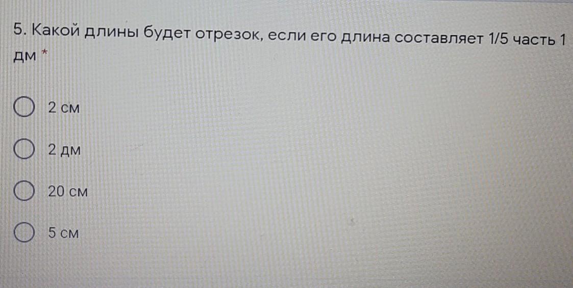 5. Какой длины будет отрезок, если его длина составляет 1/5 часть 1