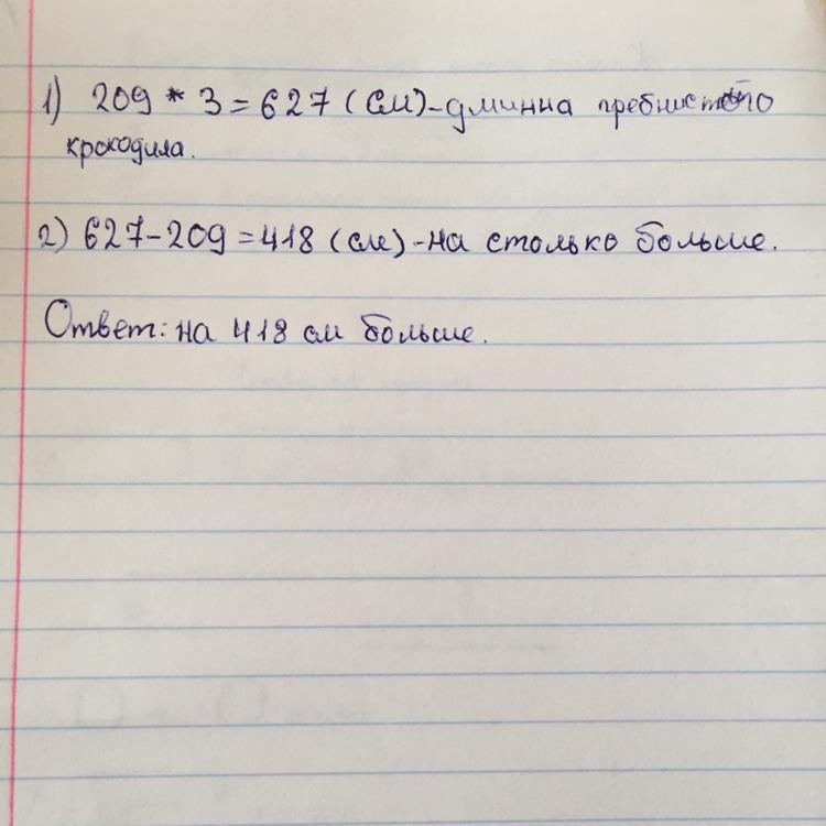 1) 209•3=627(см)- длинна гребнистого крокодила