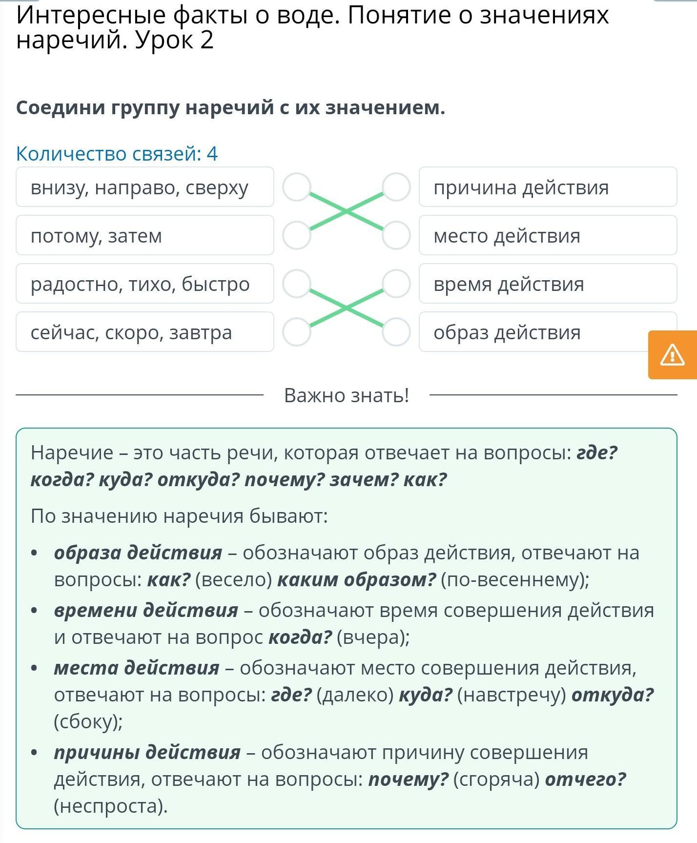 Интересные факты о воде. Понятие о значениях наречий. Урок 2