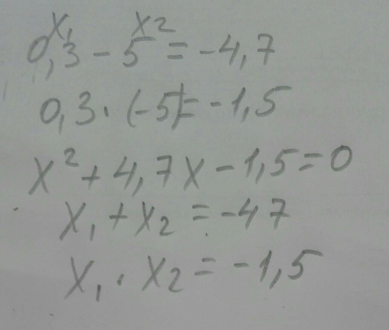 Составьте квадратное уравнение, корни которого равны 0,3 и -5