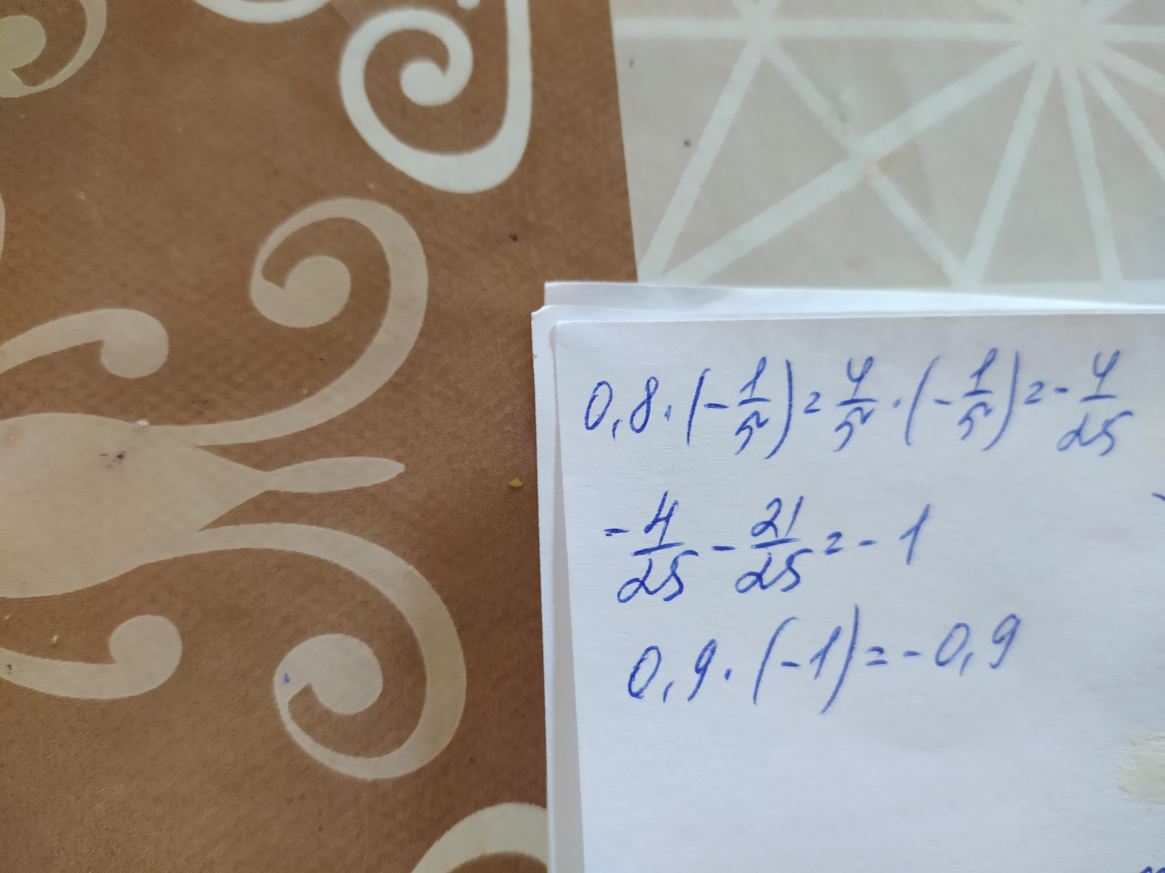 Обчисліть 0,9(0,8(-1/5)-21/25)