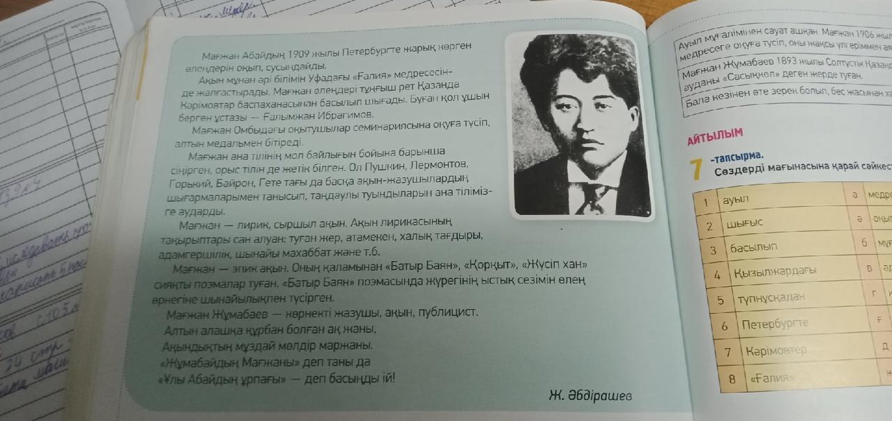 5. Мағжан қандай ақындардың шығармашылығымен танысып,туындыларды ана тілімізге аударды? Жауабы: Пушкин,Лермонтов,Горький Байрон , Гете шығармашылығымен танысып,туындыларды ана тілімізге аударды .