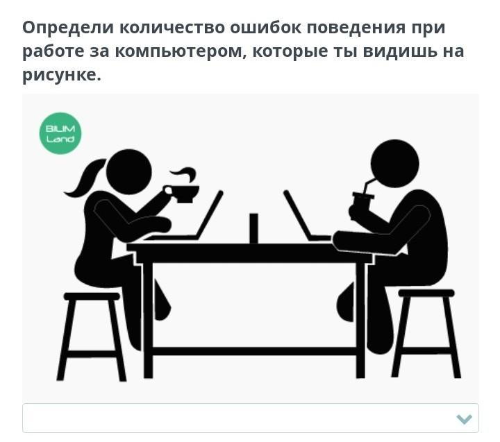 Определи количество ошибок поведения при работе за компьютером, которые ты видишь на рисунке.