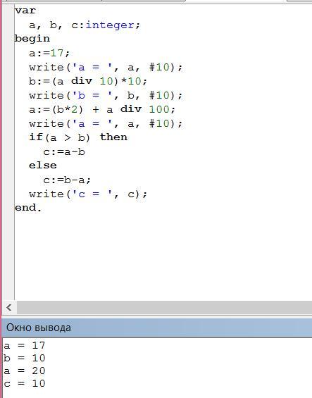 a:=(b*2) + a div 100; // b * 2 = 10 * 2 = 20; a div 100 = 17 div 100 = 0;